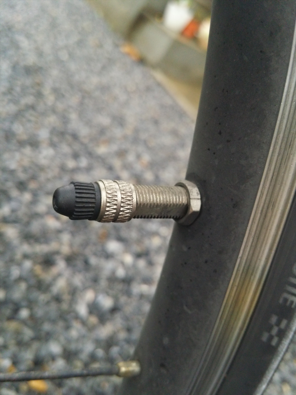 自転車 2015/11/02 自転車のバルブを英→米に 「出先で乗れる折りたたみ自転車が欲しい」 ぼんやり考えていたら、普段から乗り回している自転車のメンテに関してかなりズボラだったことに気付く。 新しいモノに手を出すより先だということで、少しずつ手を加えていくことに。 因みに納車当初の写真、買ったのはちょうど3年前。 「ちょっとスポーティに乗れるシティサイクルで、見た目も良ければ尚良し」ということでブリヂストンのマークローザ・スタッガードを選んだ。 前述の通り、メンテはこの3年殆どしていないに等しい。 チェーンもスプロケも酷い有様……。 費用はかさむけれど、命を乗せている訳でケチらず後日交換しなければ。 クランクの塗装もだいぶ禿げてる。 即交換品購入とは出来ない懐事情もあり、別のことを今回は。 アダプターを使って、バルブを英式から米式にしようと。 というのも英式では空気圧を測れず、空気の甘いまま乗り続けてパンクさせたことがあったから。 そこで今回購入したのは、パナレーサーのエアチェックアダプター(キャップゲージ付き)。 取り付け作業自体は極めて簡単なので、米式に対応した空気入れを持っていればひとつ交換しても良いかも。 ただ別途空気圧計を持っていたりする場合は、あまりキャップゲージは必要ないかと。 ゲージ無しも売ってるので、そっちを選べば良いのではないかなっ。 装着して早速空気入れを開始。 普段ならコレでいいかなって所でゲージを付けてみるも、全然甘いことが判明。 もうちょっと頑張ると、下の画像のように緑になる。 わかりやすいのが良い。 このキャップゲージを常に付けて目で見える状態にしておくってのもアリかとは思うけれど、空気圧が測れる=弁を押しっぱなしにするということ。 ↑ 中はこうなってる。 そうそうすぐに漏れるモノではないとは思うけれど、自分は普通の米式のバルブキャップを付けることにした。 これでOK。 今日の作業は汚れを拭き取った所で日が落ちてきたので終了。 ということでどこまでいじるかは不明だけど、ぼちぼち手を入れていく予定で。 http://appendix.kakuren-bo.com/Entry/25/自転車のバルブを英→米に